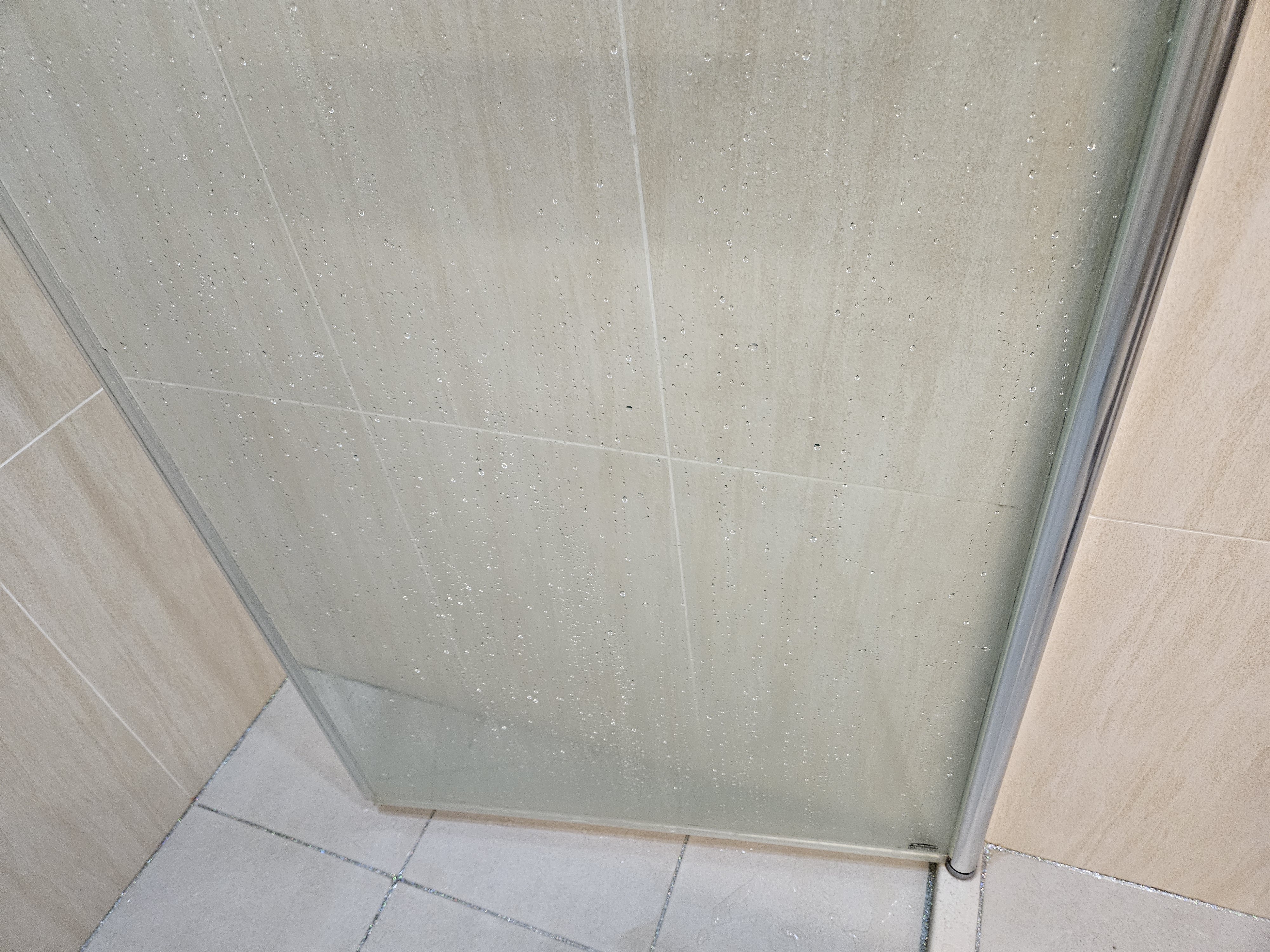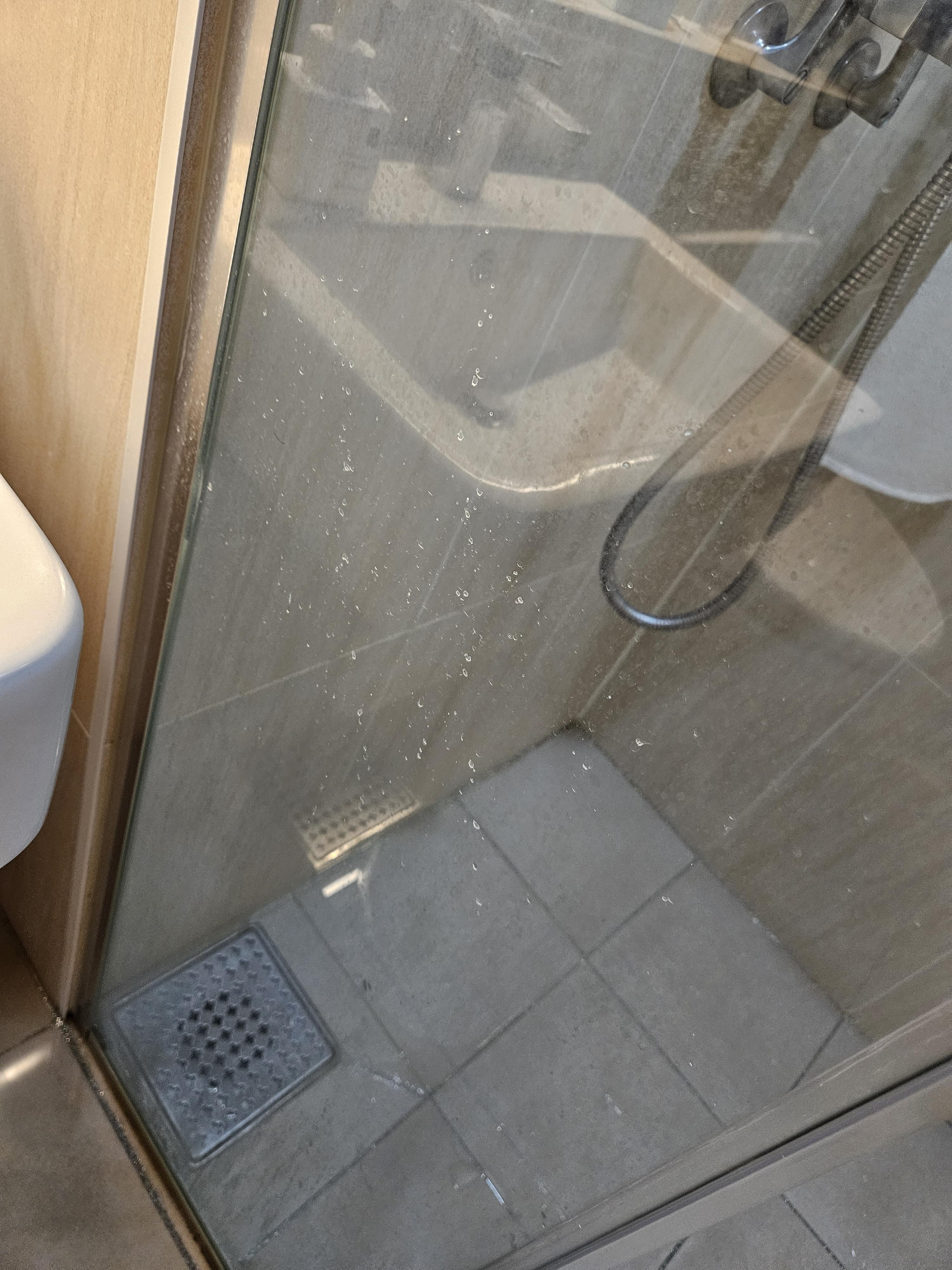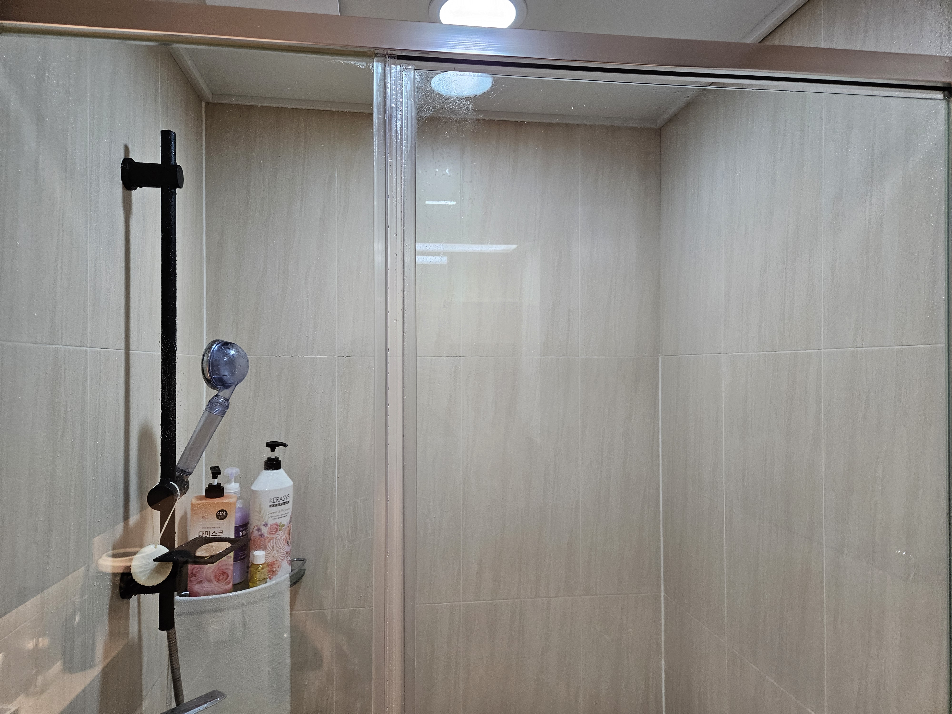 1. 먼저 샤워부스 유리에 물을 뿌려주기