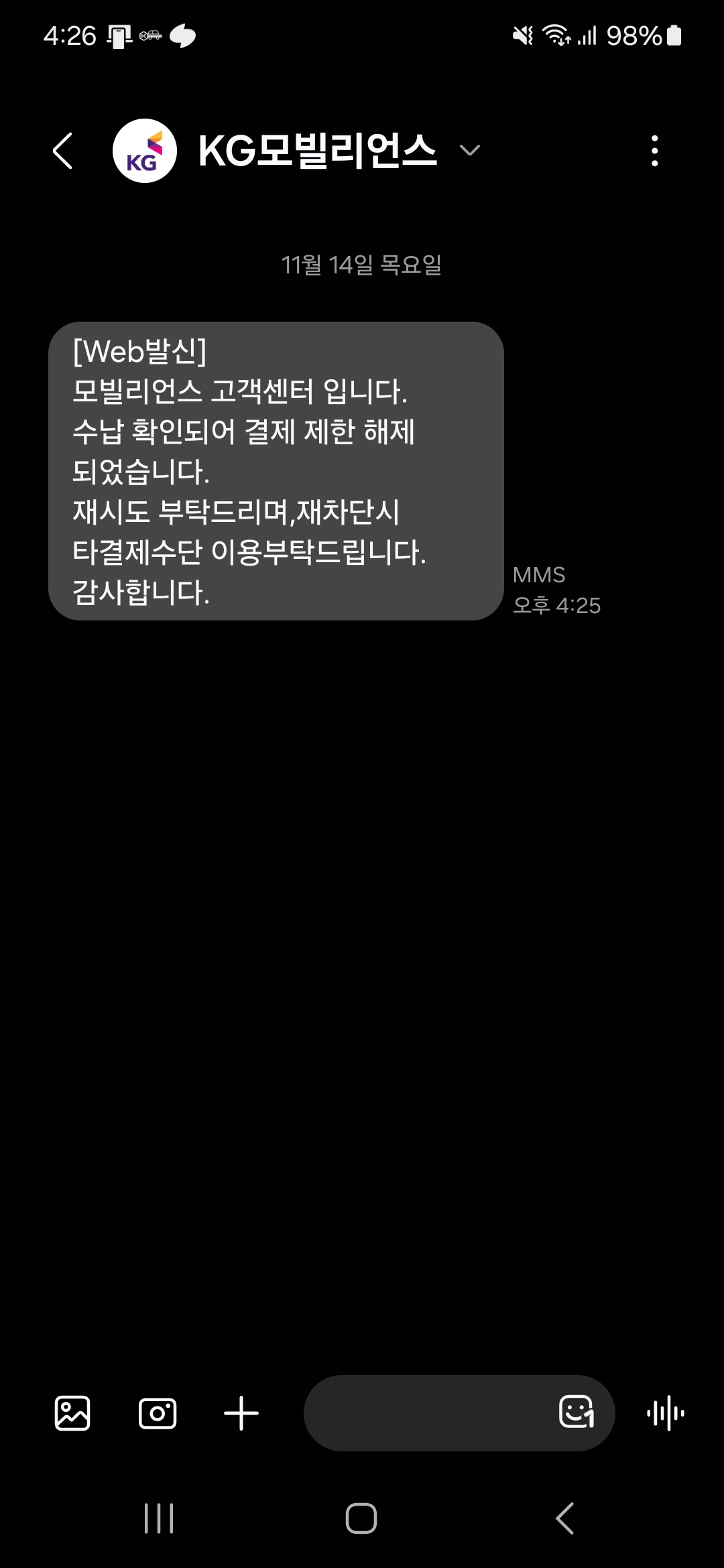 그랬더니, 통신사에 직접 조회 요청을 한 뒤, 결제가 가능한 상태로 바꿔주겠노라고 한다.