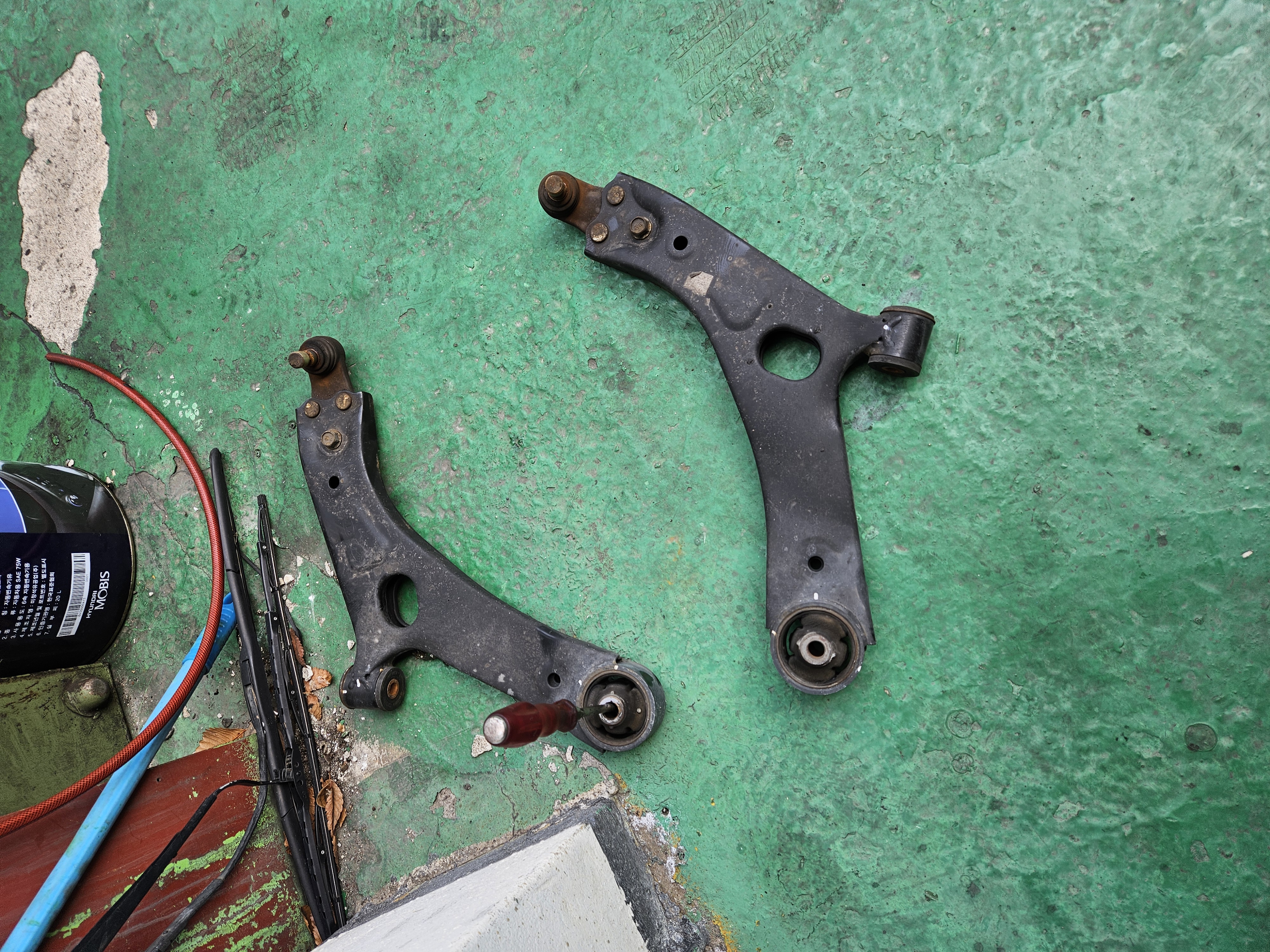 과연 탈거된 부품에 녹은 물론이고, 부싱(고무류)이 경화해서 거의 움직이질 않았다.