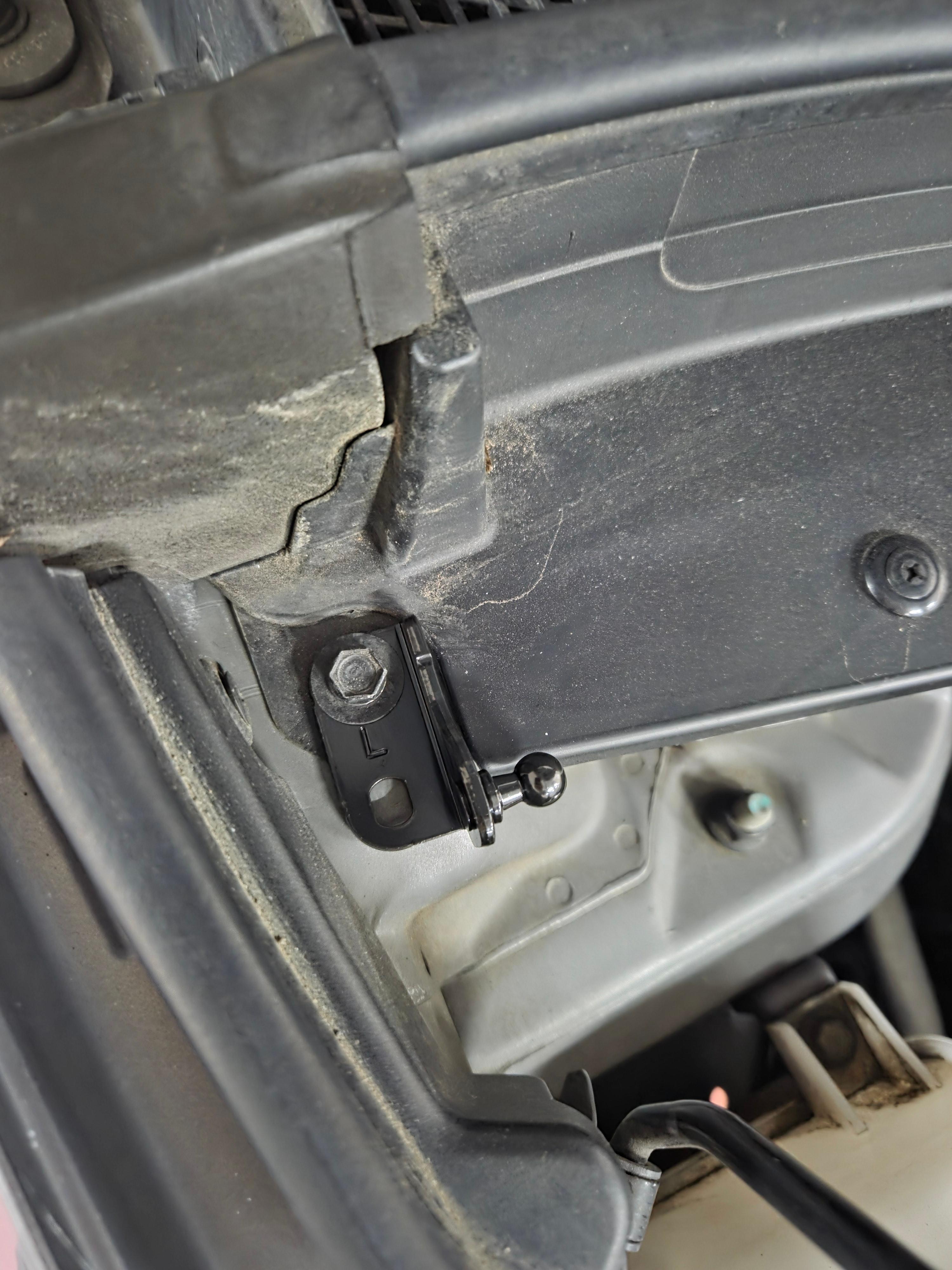 6. 10mm 볼트를 풀어주고, 그 자리에 '브라켓 어셈블리-후드 리프터 마운팅'을 장착해 준다.