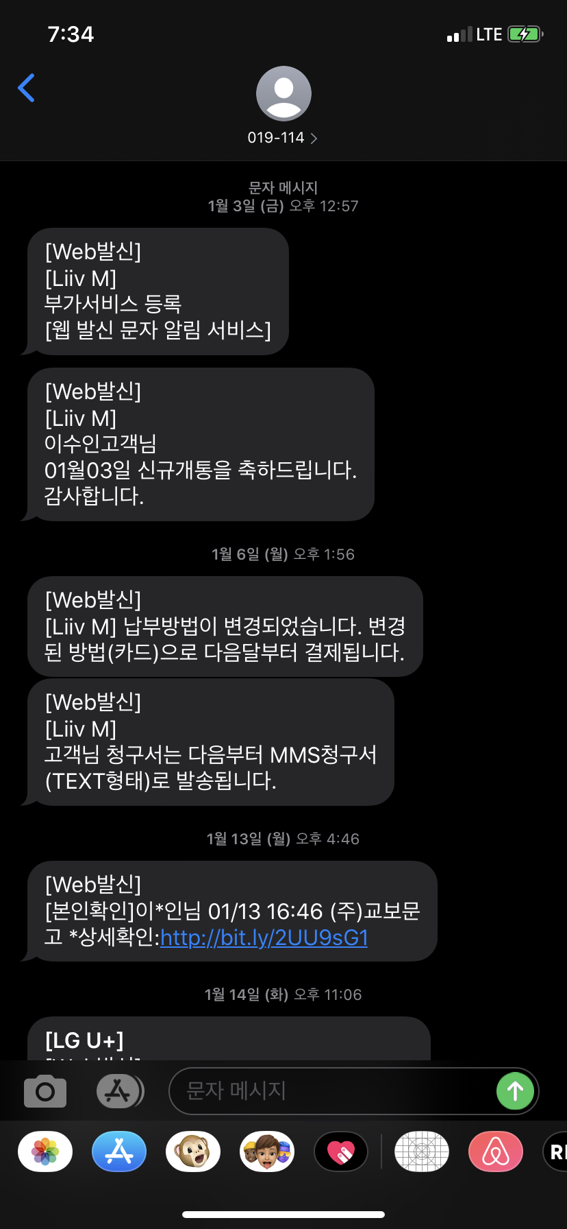 리브모바일은 LG U+망만 이용하는 줄 알았더니, 고객상담센터도 019-114로 연결된다.