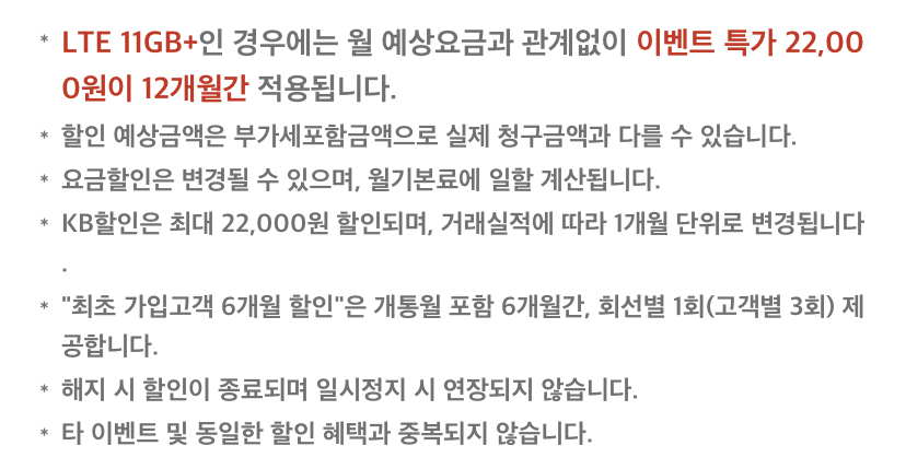 앞서 말한 특정 요금제(LTE 11GB+ 요금제)의 경우에는 1년 동안은 무조건 저 혜택을 포함한 할인가로 제공하겠다는 것이다.