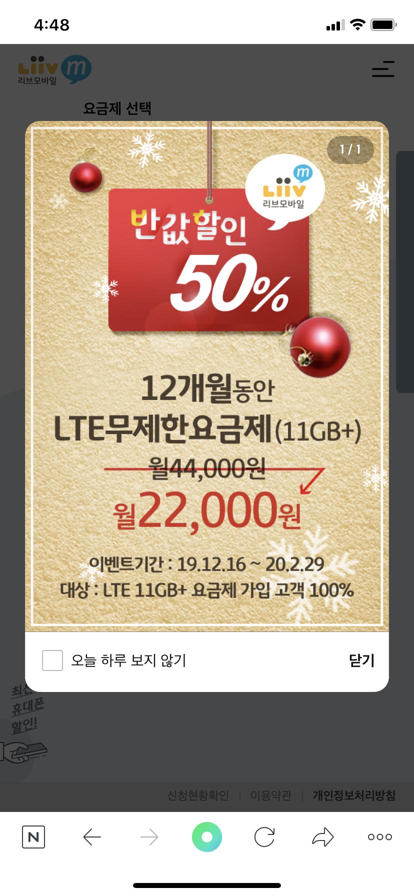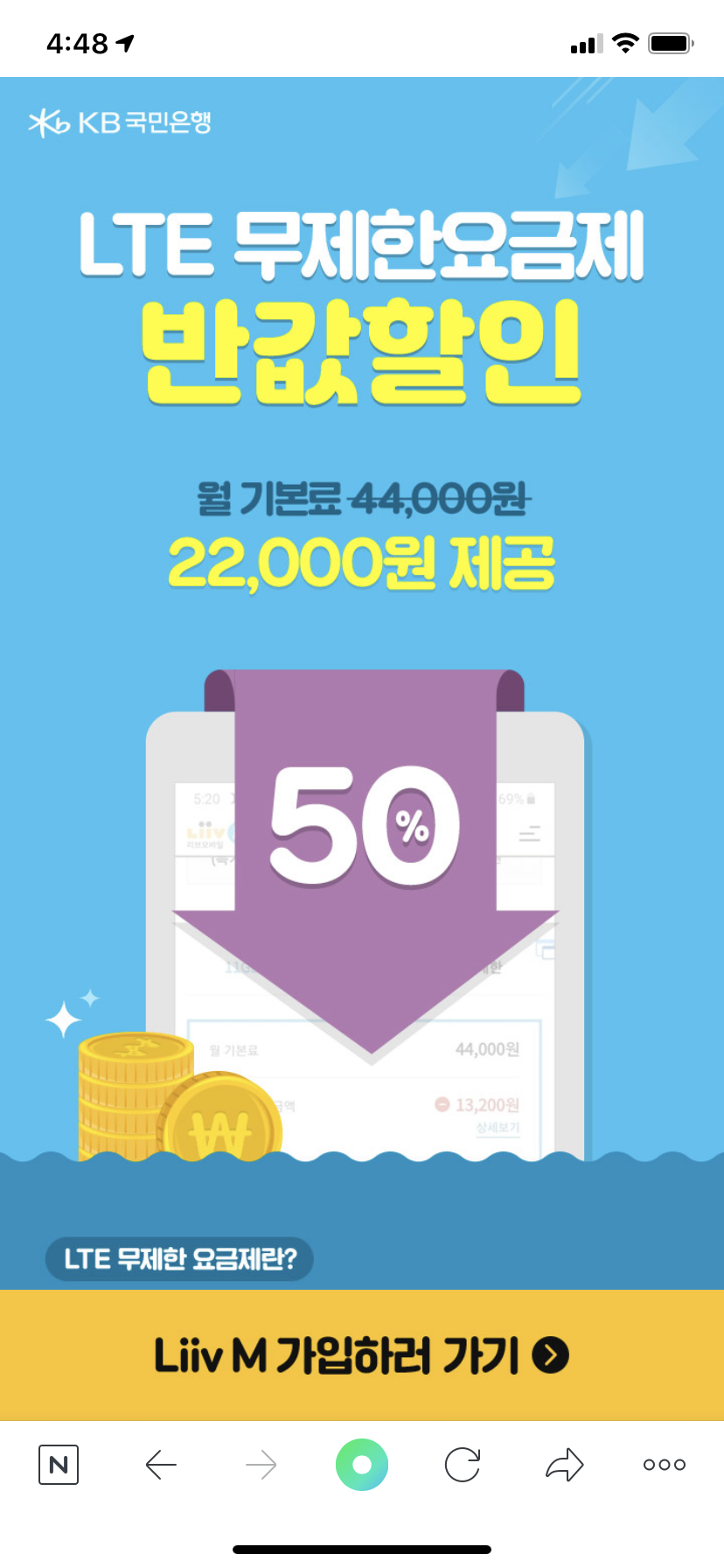 리브엠은 가입유치를 위해서, 특정 요금제(Liiv M LTE 11GB+ 3Mbps 요금제)에 대해 반값 할인 혜택을 주고 있다.