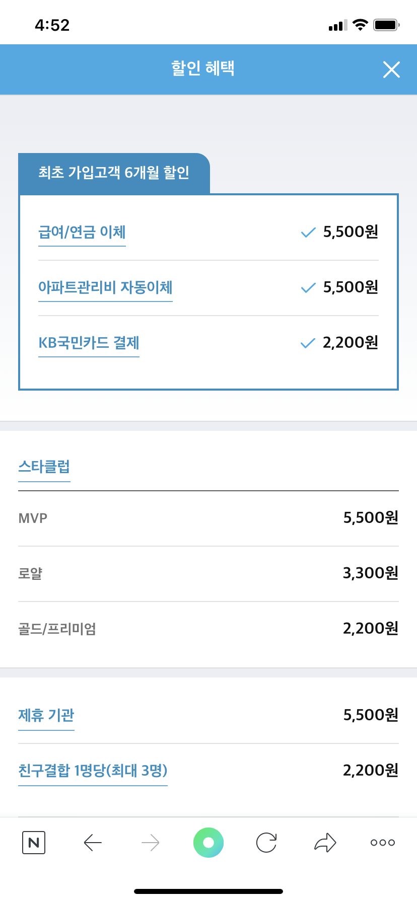 리브엠은 기본적으로 통신사 할인혜택에 관한 조건으로, 국민은행 이용을 두고 있다.
