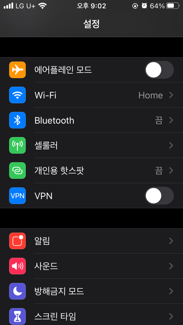 1. 그렇다면 헤이심을 다시 장착하고, 아이폰SE의 설정으로 가보자.