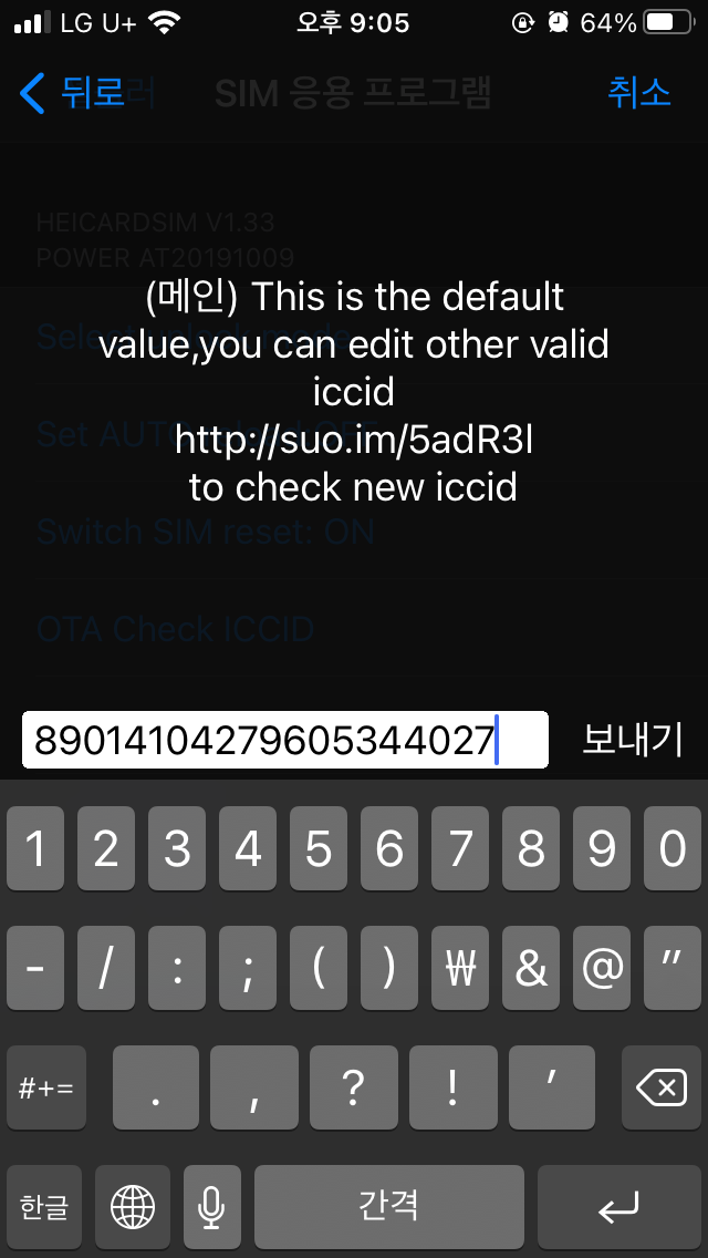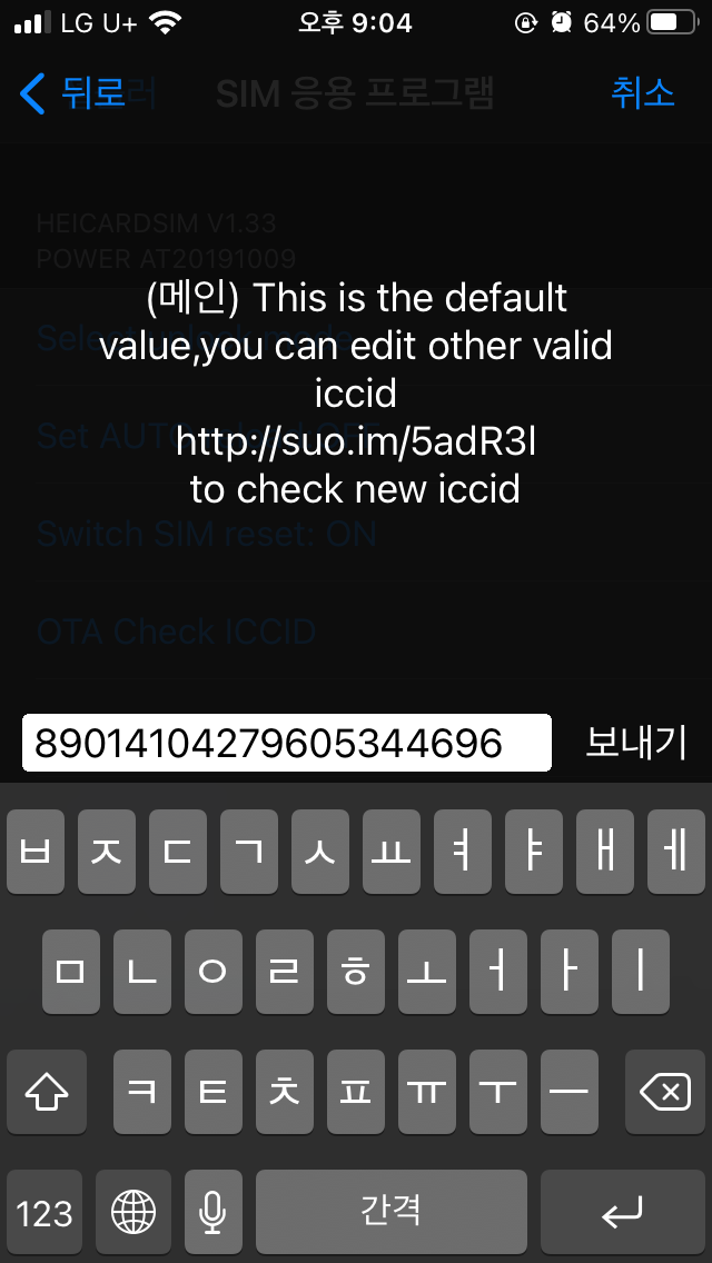 5. 기존 ICCID가 최신 버전이 아니므로, 최신 ICCID를 입력하자.