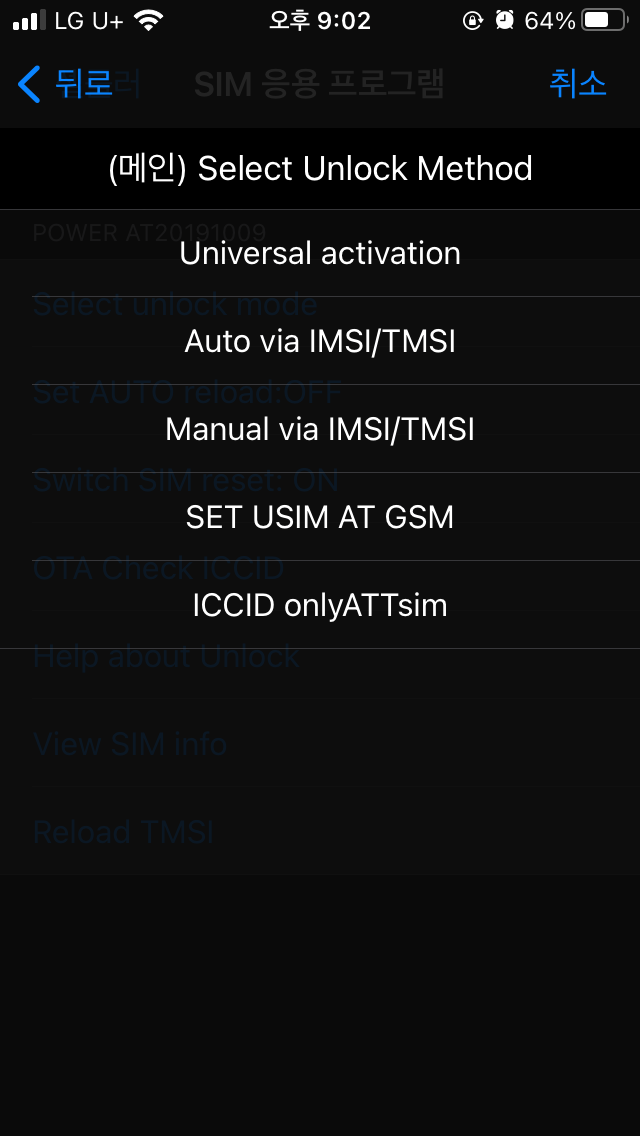또는 버전에 따라서 ICCID Perfect Unlock을 선택해야 할 수도 있다.